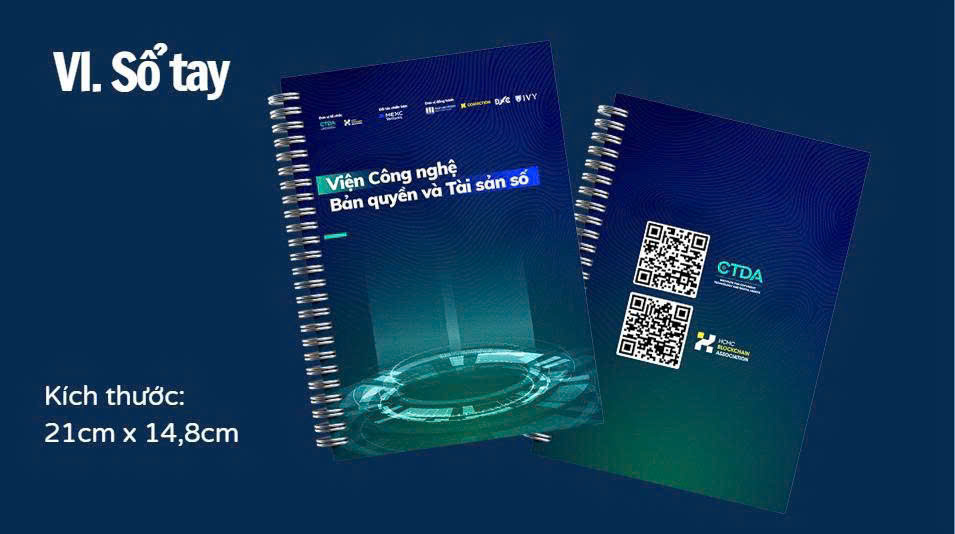 • Thiết kế thông minh với mã QR: Như mẫu thiết kế của Viện Công nghệ Bản quyền và Tài sản số, mặt sau bìa sổ được in ấn sắc nét các mã QR Code (của CTDA và HCMC Blockchain Association). Tính năng này giúp người dùng truy cập ngay lập tức vào website, fanpage, tài liệu sự kiện hoặc tải ứng dụng của doanh nghiệp mà không cần gõ URL thủ công.
