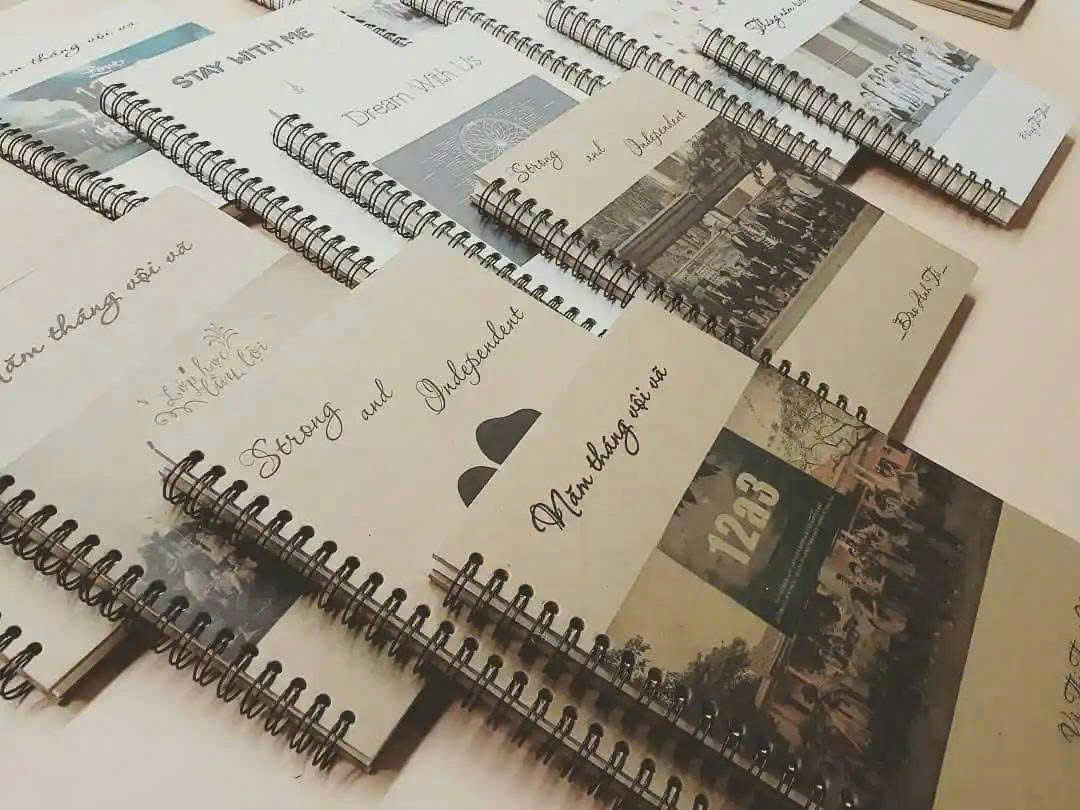 • Trường Học & Kỷ Yếu (School/Alumni): Sử dụng sổ tay bìa Kraft mang phong cách retro cho các hội nhóm học sinh, sinh viên (như mẫu Năm tháng vội vã 12A3) làm sổ lưu bút.